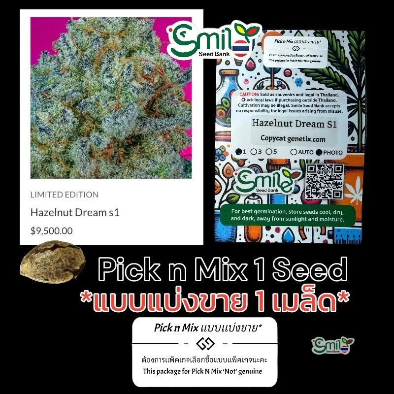 Hazelnut Dream เป็นสายพันธุ์ไฮบริดที่มีความโดดเด่นของซาติวา ซึ่งดึงดูดใจด้วยกลิ่นหอมอุ่นของเฮเซลนัทคั่วและเนยถั่วที่ครีมมี่ สายพันธุ์นี้มีโปรไฟล์เทอร์พีนที่อุดมไปด้วยเทอร์พิโนลีน, คารีโอฟิลลีน และฮิวมูลีน มอบกลิ่นหอมหวานและเผ็ดเล็กน้อย เหมาะสำหรับการใช้ในเวลากลางวัน มันให้ความรู้สึกสร้างสรรค์และยกระดับอารมณ์ เหมาะสำหรับศิลปินและนักเขียนที่ต้องการแรงบันดาลใจ ด้วยระยะเวลาออกดอก 8 สัปดาห์ Hazelnut Dream เป็นสายพันธุ์ที่เสร็จเร็ว ให้ผลผลิตมากมายของดอกที่เคลือบด้วยเรซิน ธรรมชาติที่แข็งแรงทำให้มันเหมาะสำหรับการปลูกทั้งในร่มและกลางแจ้ง โดยเฉพาะในภูมิอากาศทางเหนือ ไฮบริดเฟมินิซที่ยอดเยี่ยมนี้เป็นที่รู้จักในเรื่องรสชาติที่เป็นเอกลักษณ์และความแรงสูง ทำให้มันเป็นความฝันที่เป็นจริงสำหรับผู้ปลูกและผู้ชื่นชอบ