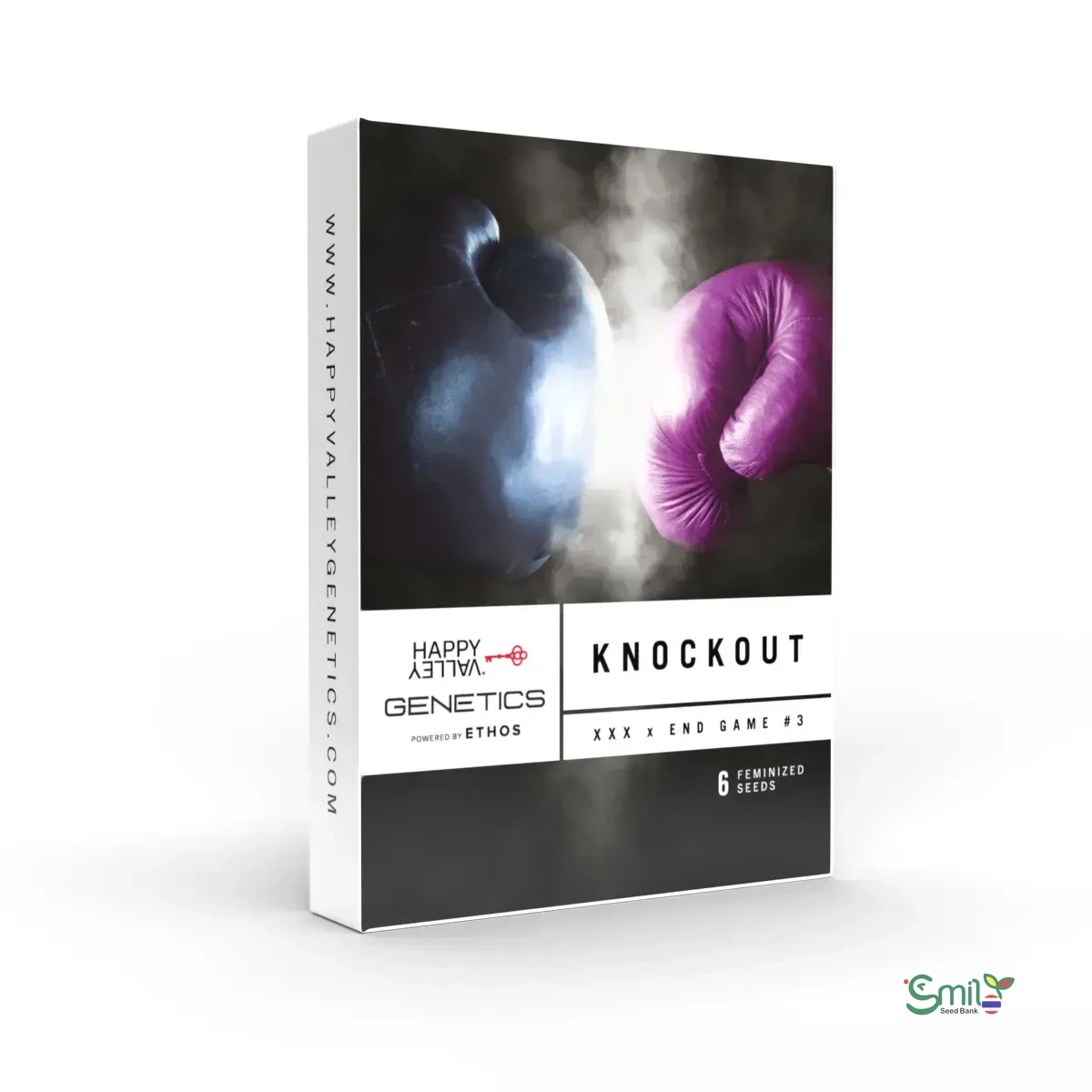 Knockout โดย Happy Valley Genetics ซึ่งได้รับการสนับสนุนจาก ETHOS Genetics เป็นสายพันธุ์ลูกผสมที่มีความโดดเด่นในด้านการเติบโตที่สม่ำเสมอและอัตราส่วนดอกต่อใบที่สูง สายพันธุ์นี้เป็นการผสมระหว่างฟีโนไทป์ XXX ที่โดดเด่นและ End Game #3 ซึ่งมี THC อยู่ในช่วง 23% ถึง 28% โปรไฟล์เทอร์พีนของมันถูกครอบงำโดย Terpinolene, Limonene และ Caryophyllene ให้รสชาติที่น่ารื่นรมย์คล้ายกับส้ม ไพน์ และลูกกวาดหวาน เป็นที่รู้จักในด้านความง่ายในการปลูก Knockout ให้ผลผลิตสูงประมาณ 58.5 กรัม/ตารางฟุตในร่ม ทำให้เป็นที่ชื่นชอบในหมู่ผู้ปลูก ผลกระทบของสายพันธุ์นี้คือพลังงาน ความสุข และการผ่อนคลาย ทำให้เป็นตัวเลือกที่ยอดเยี่ยมสำหรับการใช้ในเวลากลางวัน ในด้านการแพทย์ มันให้การสนับสนุนทางระบบประสาทและความสมดุลของเมตาบอลิซึม ซึ่งเป็นประโยชน์อย่างยิ่งสำหรับการจัดการความเครียด