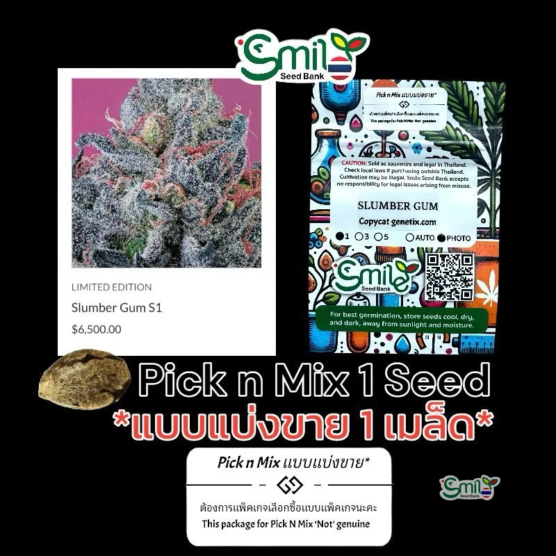 Slumber Gum S1 โดย Copycat Genetix เป็นสายพันธุ์ไฮบริดที่มีศักยภาพสูงและเป็นเพศเมียที่ถูกพัฒนาขึ้นเพื่อคุณสมบัติการทำให้หลับและการผลิตเรซินที่เข้มข้น สายพันธุ์นี้มีลักษณะเด่นเป็นอินดิกา โดยมีสายพันธุ์จาก Dr.Sleep, Bubble Gum Sherb และ True Love reversal ให้ระดับ THC สูงถึง 40% มีชื่อเสียงในเรื่องการทำให้หลับอย่างทรงพลัง เริ่มต้นด้วยการยกสมองก่อนเปลี่ยนเป็นการผ่อนคลายร่างกายอย่างลึกซึ้ง โปรไฟล์รสชาติเป็นการผสมผสานที่ซับซ้อนของหมากฝรั่งหวาน เชอร์รี่ และแก๊สที่มีกลิ่นดิน เหมาะสำหรับผู้ปลูกที่มีประสบการณ์ มันเจริญเติบโตได้ดีในสภาพแวดล้อมต่างๆ และให้ผลผลิตหนักด้วยดอกที่แข็งและแน่น เหมาะสำหรับใช้ในตอนเย็น มีประสิทธิภาพสูงในการจัดการกับการนอนไม่หลับ ปวดเรื้อรัง และความเครียดรุนแรง