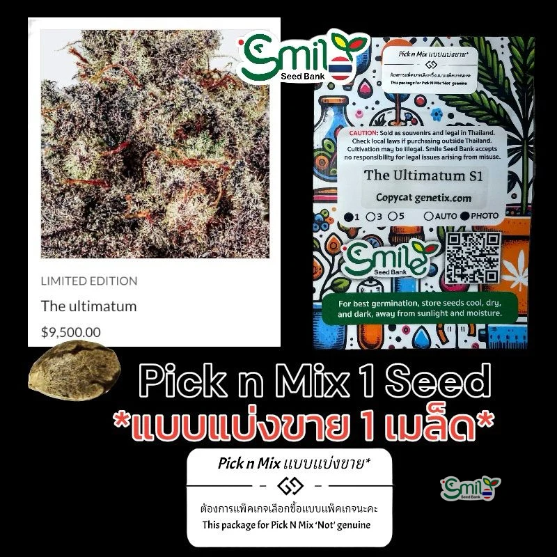 The Ultimatum เป็นสายพันธุ์ไฮบริดที่มีความโดดเด่นของอินดิกาจาก Copycat Genetix ที่มีชื่อเสียงในด้านพันธุกรรมที่ทรงพลังและการผลิตเรซินที่ยอดเยี่ยม สายพันธุ์นี้ผสมผสานพันธุกรรมของ MAC1, Dip N Stix และมรดกอัฟกานีบริสุทธิ์ ทำให้ได้ดอกที่หนาแน่นและเต็มไปด้วยไตรโคม ด้วยระดับ THC ที่สูงถึง 34% มันให้ความรู้สึกเร่งรีบทางสมองที่ทรงพลังตามมาด้วยการผ่อนคลายร่างกายอย่างลึกซึ้ง ทำให้เหมาะสำหรับผู้ใช้ที่มีประสบการณ์ โปรไฟล์รสชาติเป็นการผสมผสานที่ซับซ้อนของสกั๊งค์ ลูกอมหวาน กระเทียม และเชื้อเพลิง พร้อมการจบแบบคุกกี้ครีม เป็นที่รู้จักในด้านความยืดหยุ่นสูงและผลผลิตขนาดใหญ่พิเศษ The Ultimatum เป็นตัวเลือกที่คุ้มค่าสำหรับผู้ปลูกเชิงพาณิชย์ที่ต้องการความน่าดึงดูดใจและความแรงระดับสูงสุด
