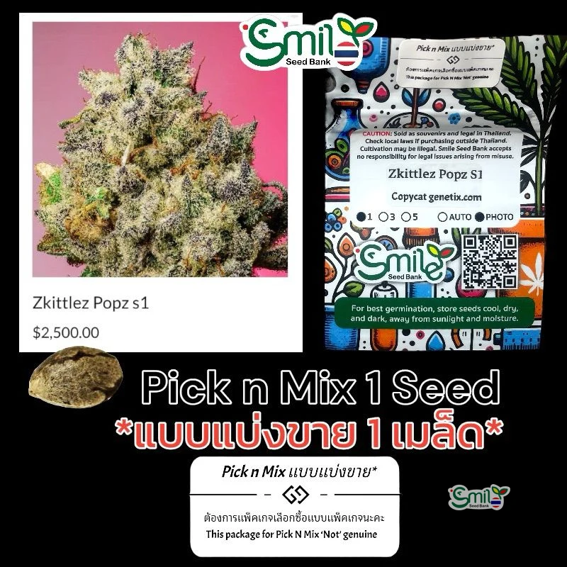 Zkittle Popz S1 โดย Copycat Genetix เป็นสายพันธุ์ไฮบริดที่ได้รับการปรับปรุงให้เป็นเมล็ดพันธุ์เพศเมียที่มีคุณภาพสูง โดยผสมผสานโปรไฟล์เทอร์พีน 'Z' ที่มีชื่อเสียงกับการผลิตเรซินที่แข็งแกร่งของสายพันธุ์ 'Popz' สายพันธุ์นี้มีความโดดเด่นในด้านอินดิก้า โดยมีระดับ THC ที่สามารถสูงถึง 38% และมีแคนนาบินอยด์รวมมากกว่า 39% มันให้ความรู้สึกสูงที่มีพลังและมีความสุข เริ่มต้นด้วยการยกระดับจิตใจและเปลี่ยนเป็นการผ่อนคลายร่างกาย โปรไฟล์รสชาติเป็นการผสมผสานที่น่ารื่นรมย์ของลูกอม หมากฝรั่ง เชอร์รี่ และเบอร์รี่ พร้อมกับกลิ่นเปรี้ยว การปลูกสายพันธุ์นี้ต้องการทักษะปานกลาง เนื่องจากไวต่อการเปลี่ยนแปลงของสารอาหาร แต่ให้ผลผลิตที่มากของดอกที่หนาแน่นและเต็มไปด้วยไตรโคม เหมาะสำหรับการจัดการกับภาวะซึมเศร้า ความวิตกกังวล และความเครียดเรื้อรัง Zkittle Popz S1 เป็นตัวเลือกชั้นนำสำหรับการใช้งานทั้งเพื่อการพักผ่อนและการแพทย์