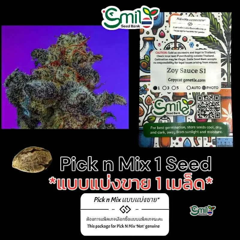 Zoy Sauce S1 โดย Copycat Genetix เป็นลูกผสมแบบเฟมินิไลซ์ที่มีเอกลักษณ์เฉพาะตัวด้วยโปรไฟล์เทอร์พีนของ Zkittlez และความหนาแน่นของเรซินที่สูงสุด สายพันธุ์นี้มีลักษณะเด่นของอินดิกา มีสายพันธุ์ที่หลากหลายรวมถึง Zushi, Lemon Cherry Gelato และ GMO Cookies ให้รสชาติที่ซับซ้อนของลูกอมหวาน แก๊สที่มีกลิ่นแรง และกลิ่นครีม ด้วยระดับ THC ที่สูงถึง 31% มันให้ความรู้สึกที่ทรงพลังแต่สมดุล เริ่มต้นด้วยความรู้สึกยินดีและเปลี่ยนเป็นการผ่อนคลายอย่างลึกซึ้ง Zoy Sauce เป็นความฝันของผู้ปลูก ให้ผลผลิตที่แน่นและเต็มไปด้วยไตรโคมในเวลาเพียง 8-9 สัปดาห์ เหมาะสำหรับการจัดการความเครียดและความวิตกกังวล สายพันธุ์นี้เหมาะสำหรับทั้งการใช้เพื่อความบันเทิงและการแพทย์